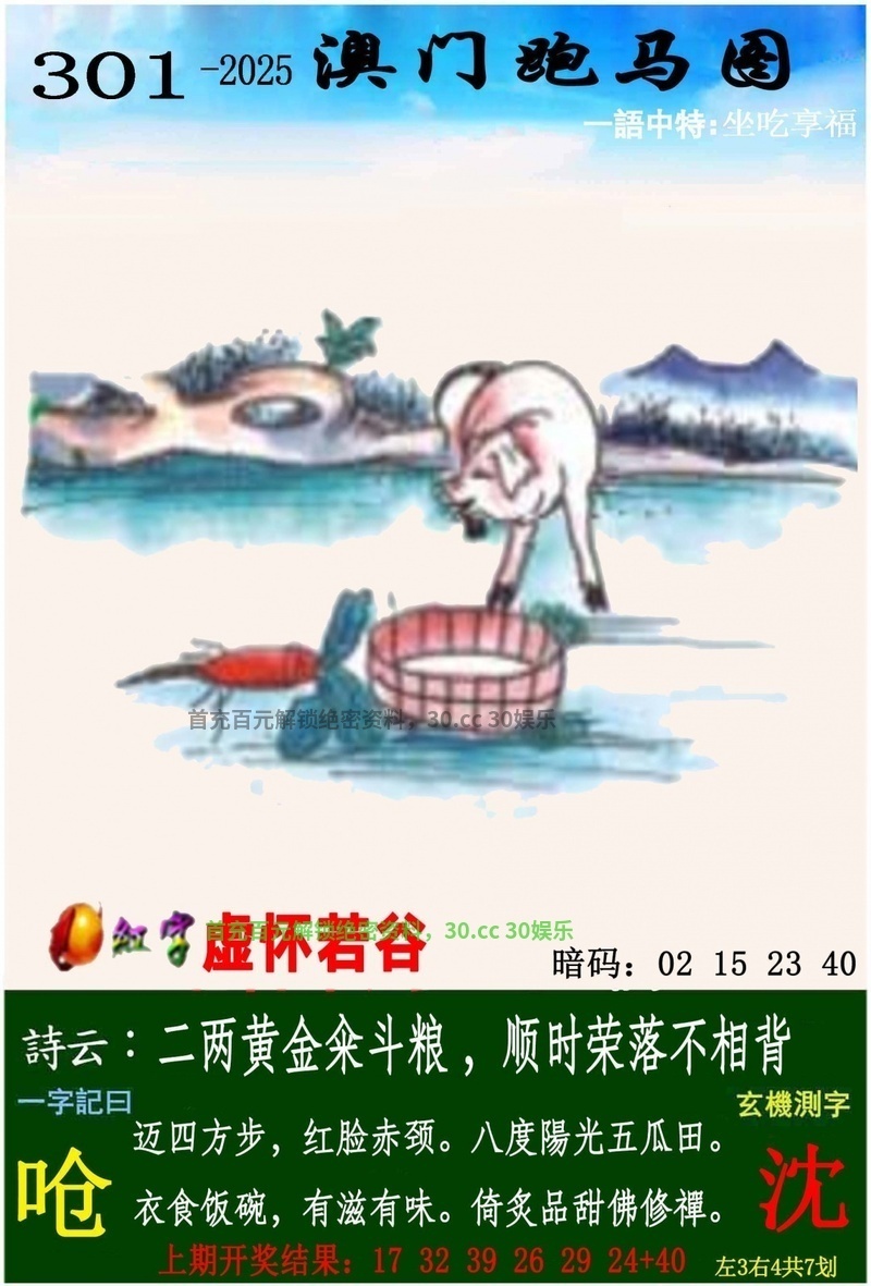 | 303期:彩库论坛【财富⑥肖】内部透码